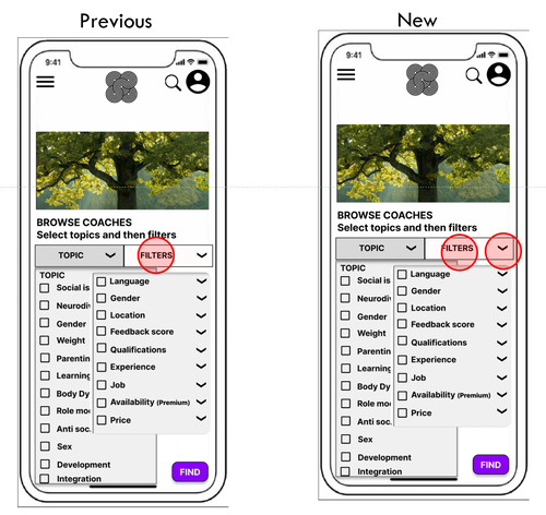 • 70% of respondents felt that Calendar belonged in My Profile not Coaching. I implemented this later decided to place it in Find a Coach.