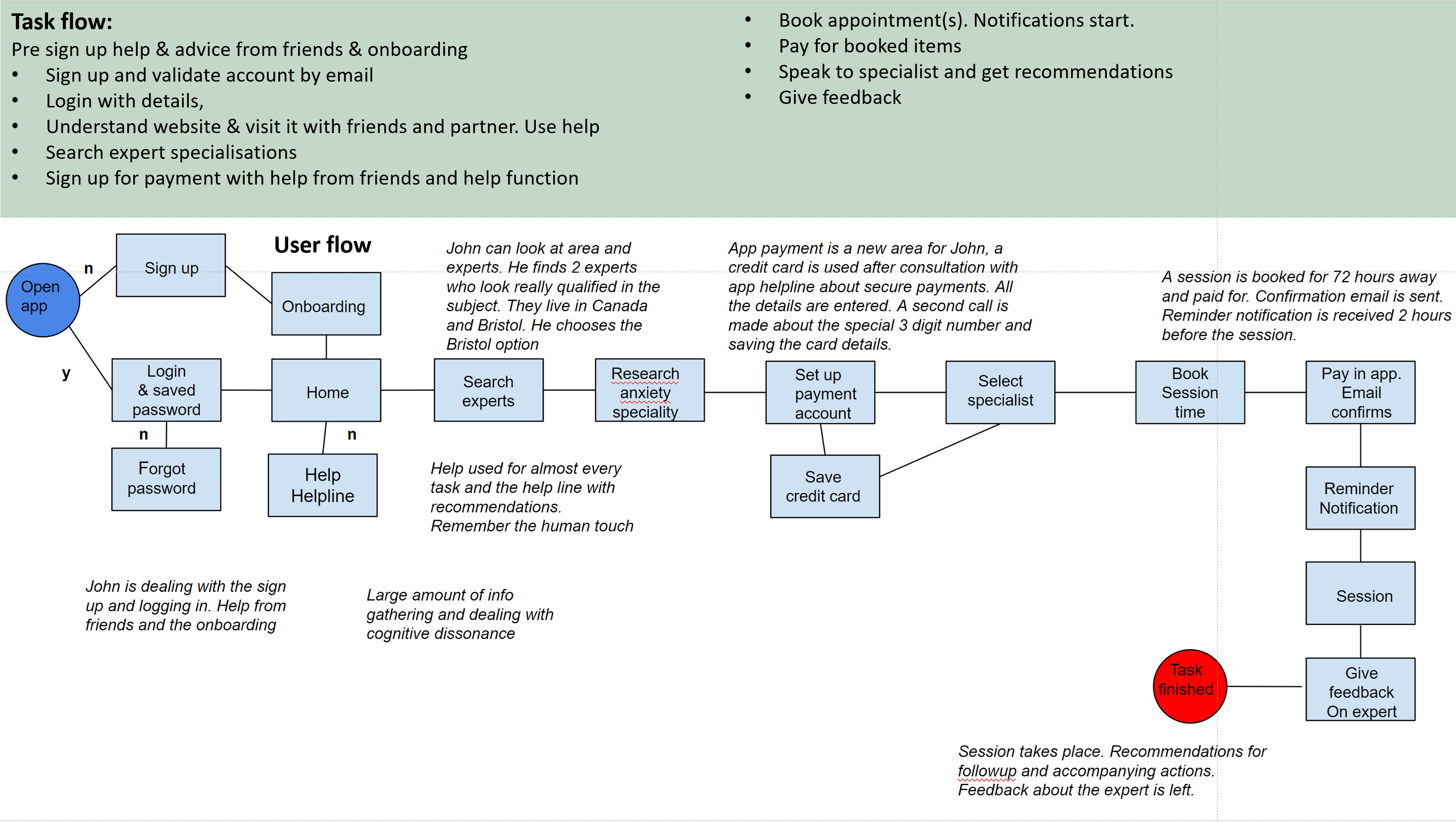 I looked at what prompted the persona to begin their task, how they know they are finished and what they need to succeed. I mapped out their tasks and the user flow. In addition to these tasks I looked at much more complex flow to reach the end goal of a 10 week issue success.