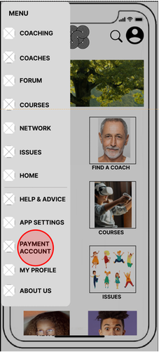 ISSUE 1. HIGH. No link to payment account from home (high) or Profile (low)