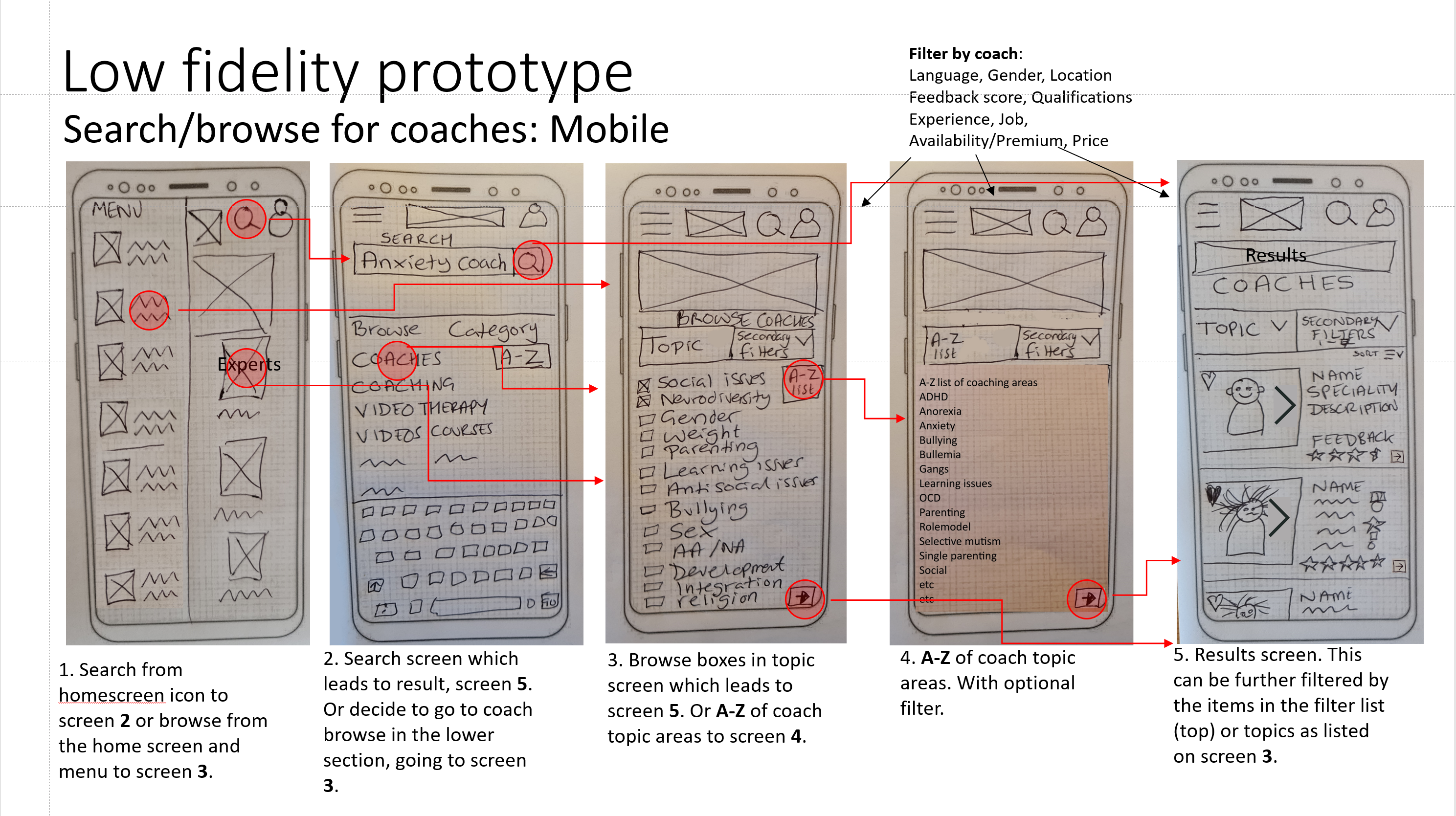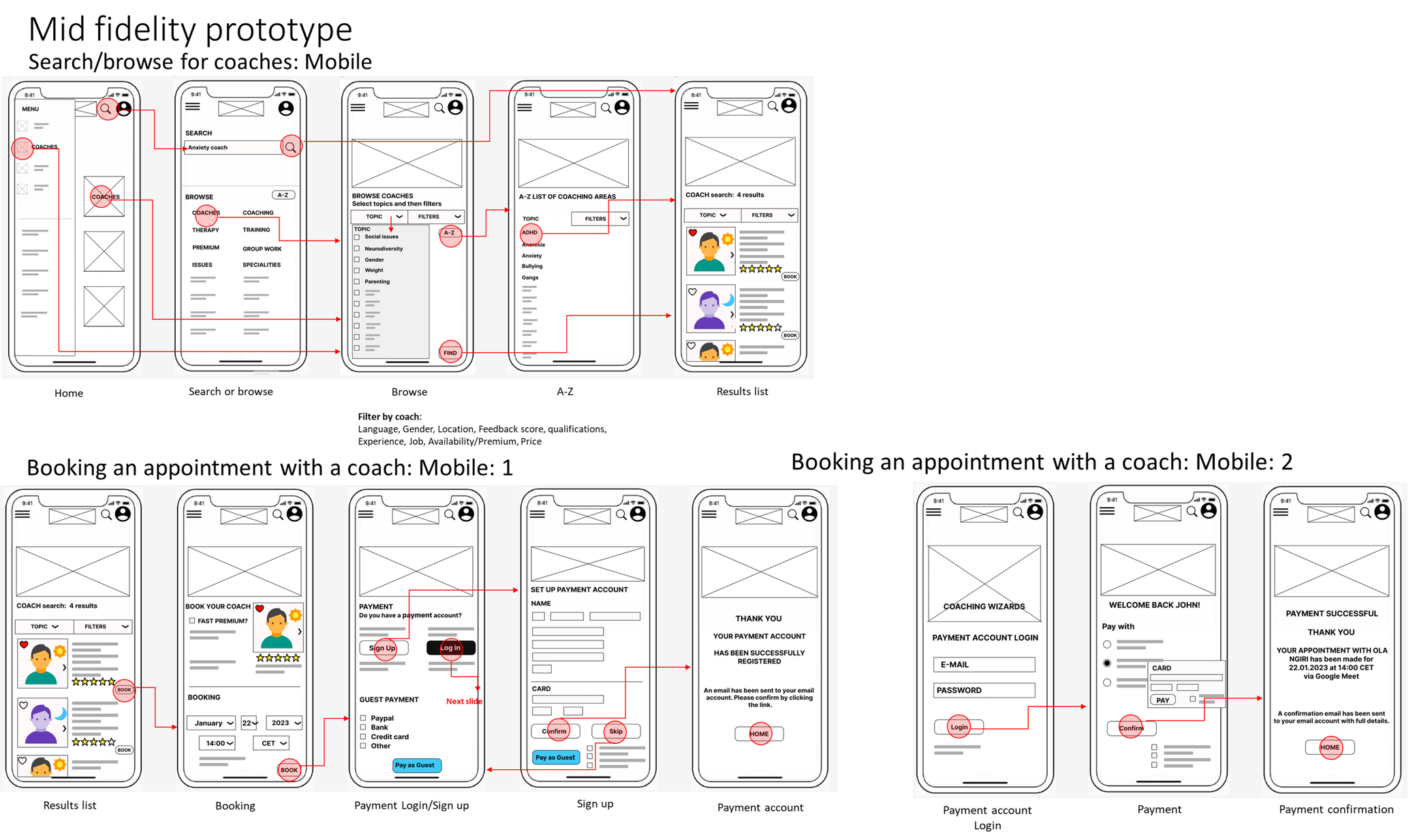 I sketched with low fidelity sketches in powerpoint but started wireframing digitally with mid fidelity. Some of the prototype iterations can be seen here below by clicking the image.