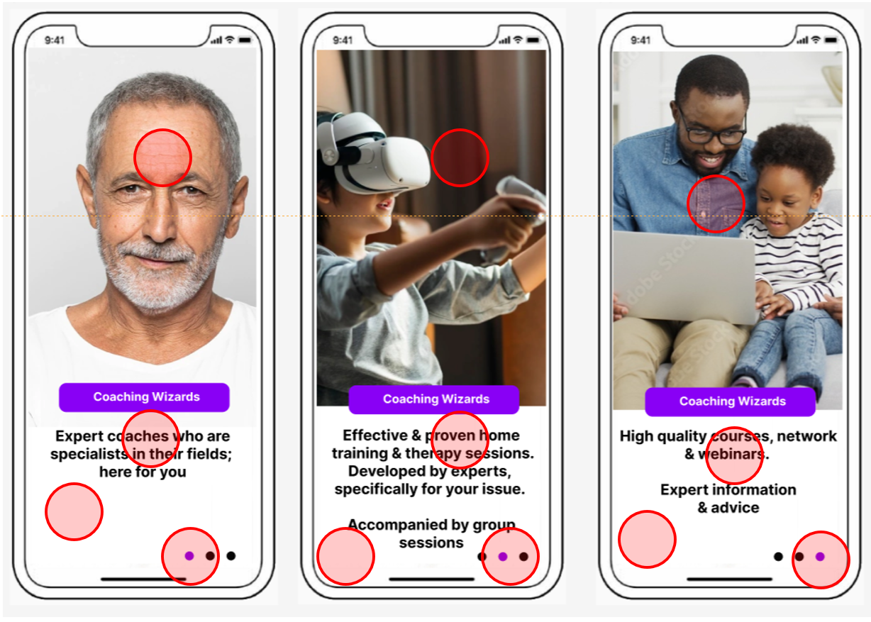Suggested Change: Add links to all areas on the onboarding, including dots, photos, text and page, to ensure 100% progression to the next page.