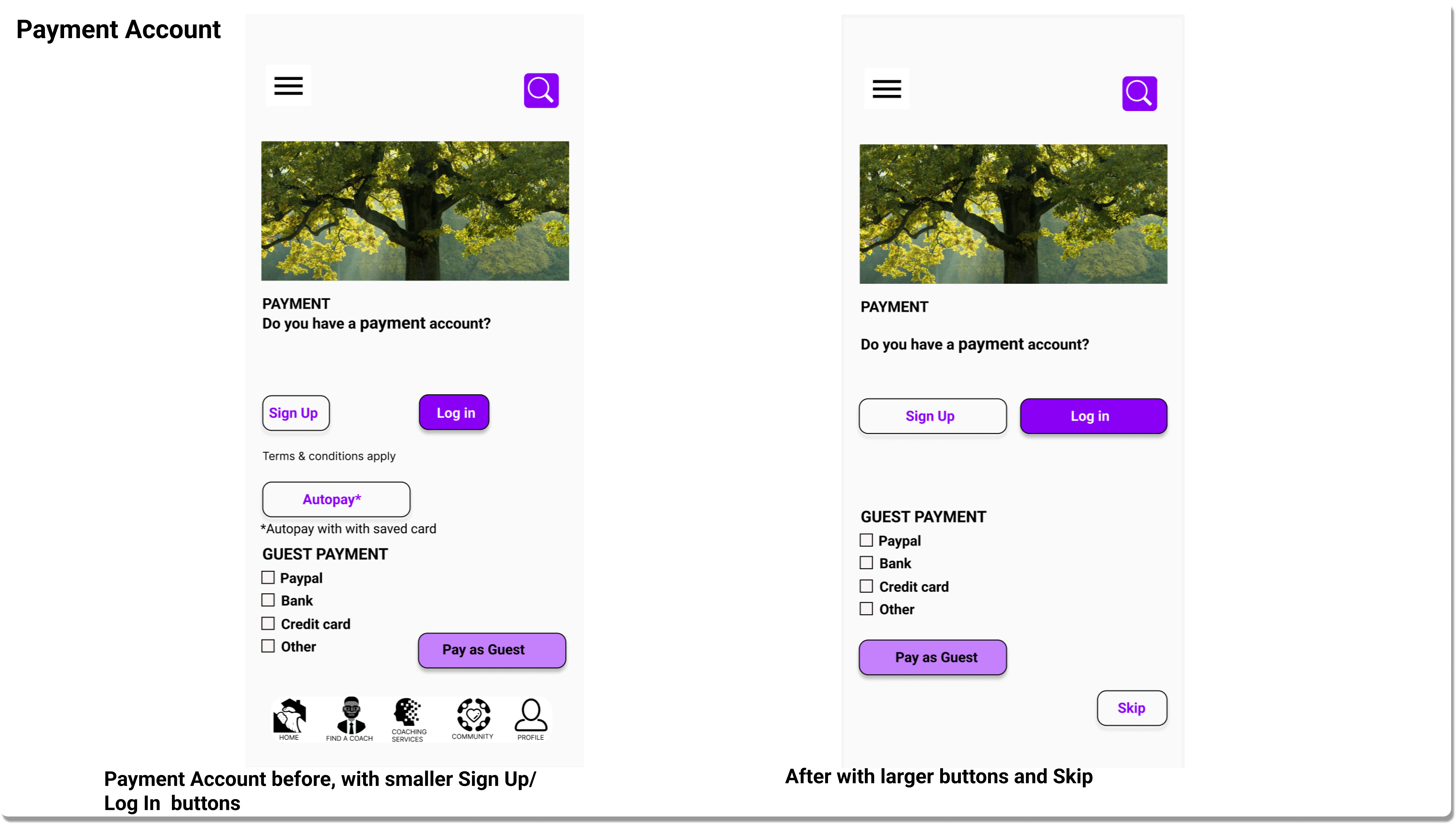 You can find all the information about that feedback in the peer-testing document and slides below of 2 of the main changes concerning the Payment Account page and the Home Page.